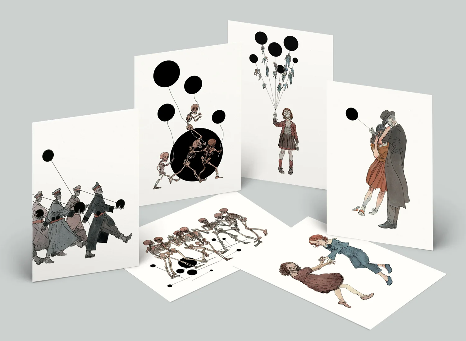 On one side we show the images from the historical Dance of Death by Niklaus Manuel. As a contemporary commentary on this, we are showing the images from the leporello publication ‘Totentanz?’ by Bernese artists Jared Muralt (illustration) and Balts Nill (text) from 2016 on the back of the construction fences.